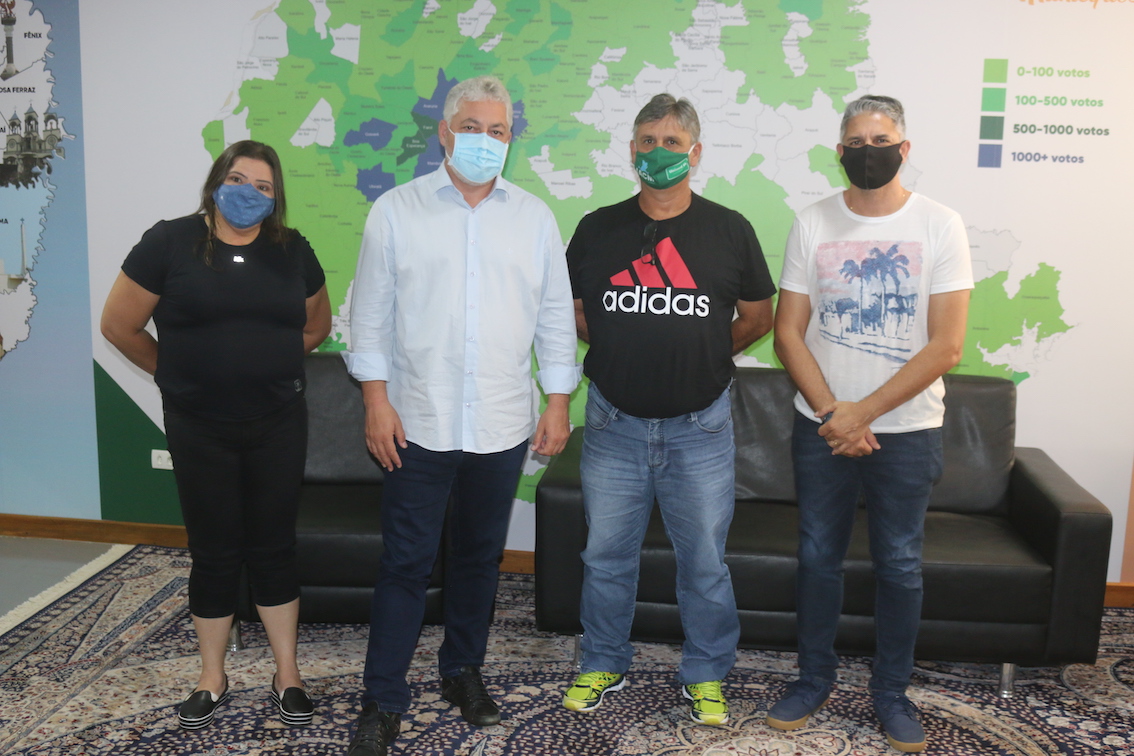 Atendendo em Campo Mourão nesta segunda-feira, 15, o deputado estadual Douglas Fabrício esteve reunido com o técnico e coordenador do Instituto de Atletismo, Paulo César da Costa “Professor Paulinho”; chefe do Núcleo Regional de Esportes, Rosemeire de Caires e com o coordenador de Educação Física do Núcleo Regional de Educação, Sérgio Mello. Foram tratados assuntos relacionados a projetos esportivos, especificamente a modalidade de Atletismo, que vem apresentando resultados em competições nacionais e internacionais.