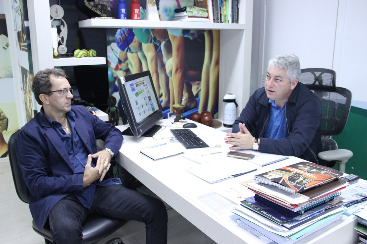O secretário do Esporte e Turismo do Paraná, deputado Douglas Fabricio, recebeu nesta quinta-feira (18) o vereador de Alto Paraná, Flávio Tosti, que apresentou projetos e reivindicações da secretaria de esporte do município. Ele também aproveitou a ocasião para conhecer a Arena Portátil Multiuso, instalada na área externa do Ginásio do Tarumã, em Curitiba. “Observamos de perto este interessante projeto do governo estadual. Temos intenção de ampliar a prática do esporte e a participação da comunidade de Alto Paraná”, argumentou o vereador.