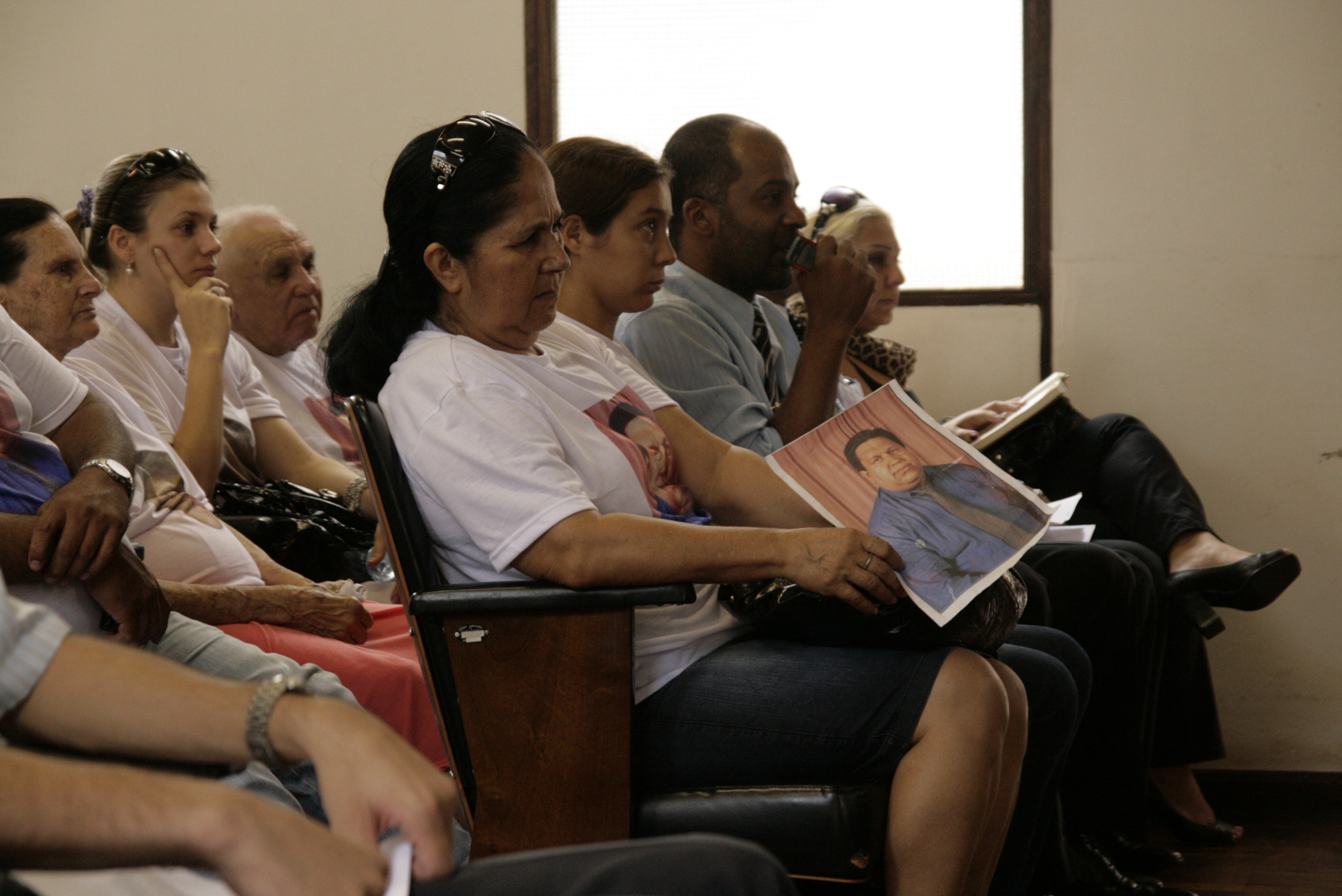 A esposa de Domingues, dona Geni, e outros familiares das duas vítimas durante o júri