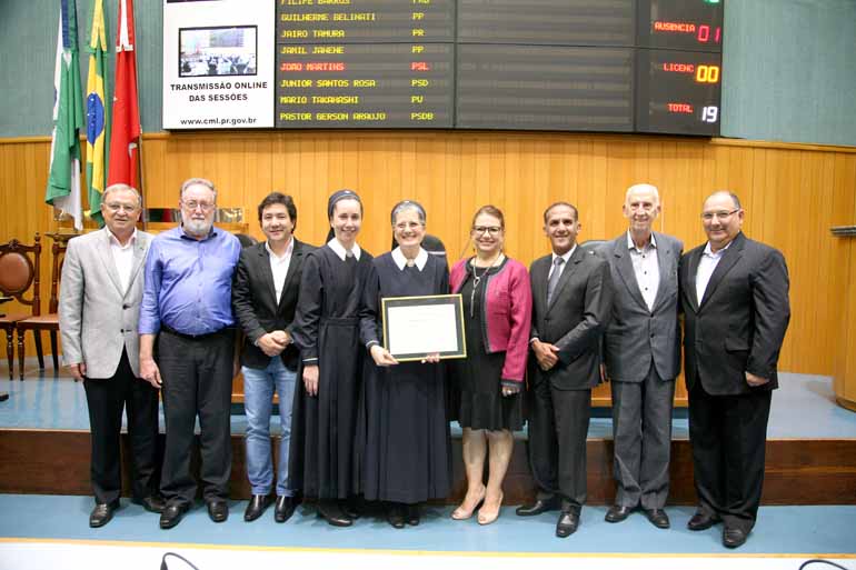 A irmã Elvira Maria Perides Lawand acaba de receber menção honrosa da Assembleia Legislativa do Paraná. No final do mês passado, ela mudou-se para São Paulo, onde assumiu novas funções no Instituto Secular das Irmãs Maria de Schoenstatt. O autor da homenagem foi o deputado estadual Tercilio Turini, que destacou que "por todas as vidas que ajudou a salvar, pela sua fé e por todas as orações que direcionou ao próximo, irmã Elvira Maria merece os mais sinceros e carinhosos agradecimentos". Em cerimônia de despedida, na Câmara Municipal de Londrina, lá estiveram o deputado Tercilio Turini, o superintendente da Santa Casa, Fahd Haddad, o presidente da Câmara, Mário Takahashi, as irmãs Fernanda Maria Vieira e Elvira Maria, a reitora Berenice Jordão, da UEL, o vereador Rony Alves, José Cyrillo da Silveira Mendes, provedor da Santa Casa e o vereador Péricles Deliberador. Irmã Elvira Maria Lawand atuou por mais de 30 anos na Santa Casa, onde ocupou diversas funções, como gerente de Enfermagem e diretora do Centro Cirúrgico. Sempre foi uma pessoa muito estimada pelos londrinenses.