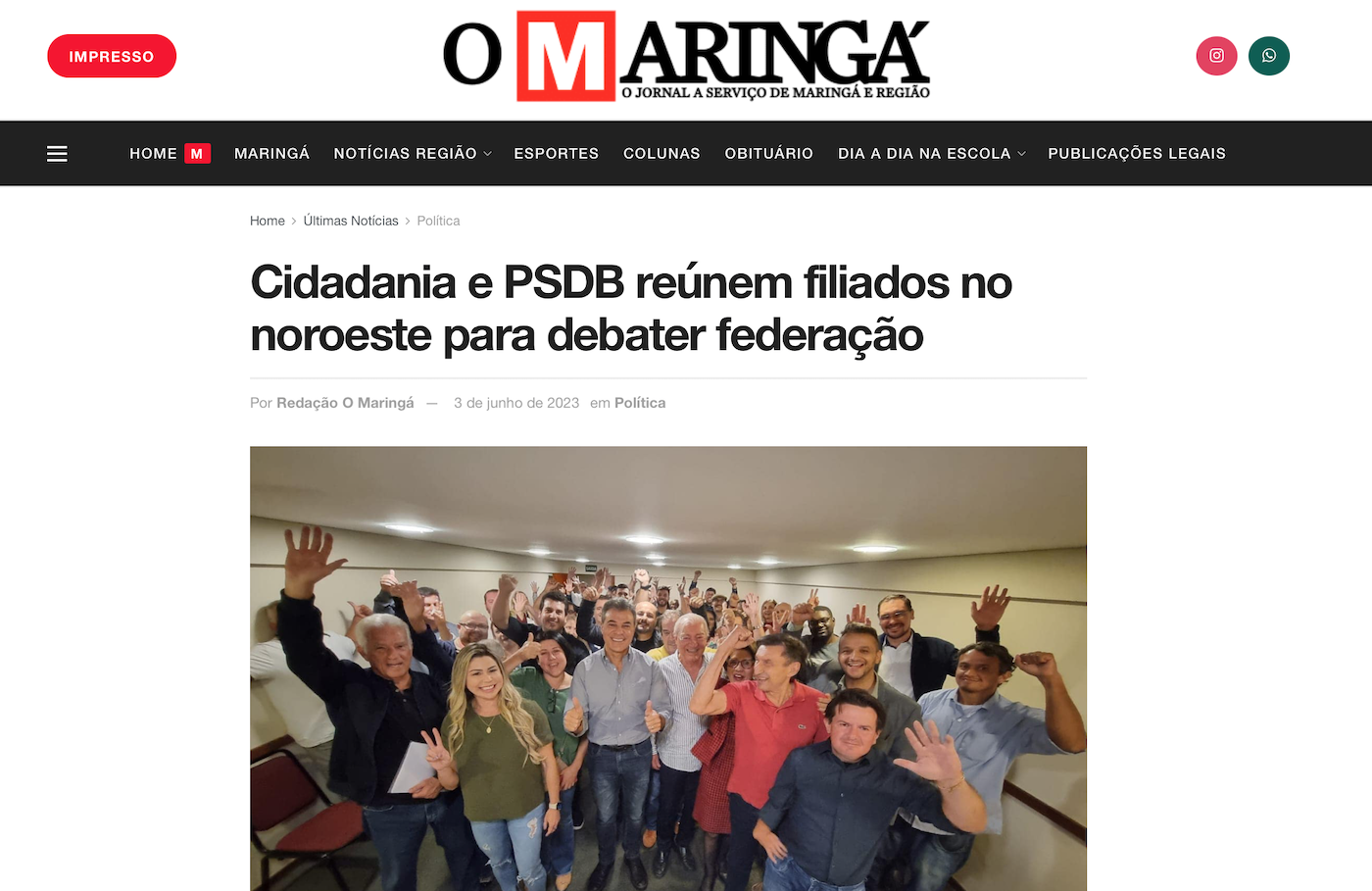 O presidente do PSDB, deputado federal e ex-governador Beto Richa e o presidente do Cidadania, Rubens Bueno fazem nesta semana mais uma rodada de encontros em cinco cidades do Noroeste do estado. O objetivo é debater com filiados a nova realidade da federação, formada pelos dois partidos nas eleições de 2022, e traçar metas para as eleições de prefeitos e vereadores de 2024. A maratona, que começou pelo Norte do estado no mês passado, reúne filiados de Paranavaí, Umuarama, Cianorte, Jardim Alegre e Maringá.