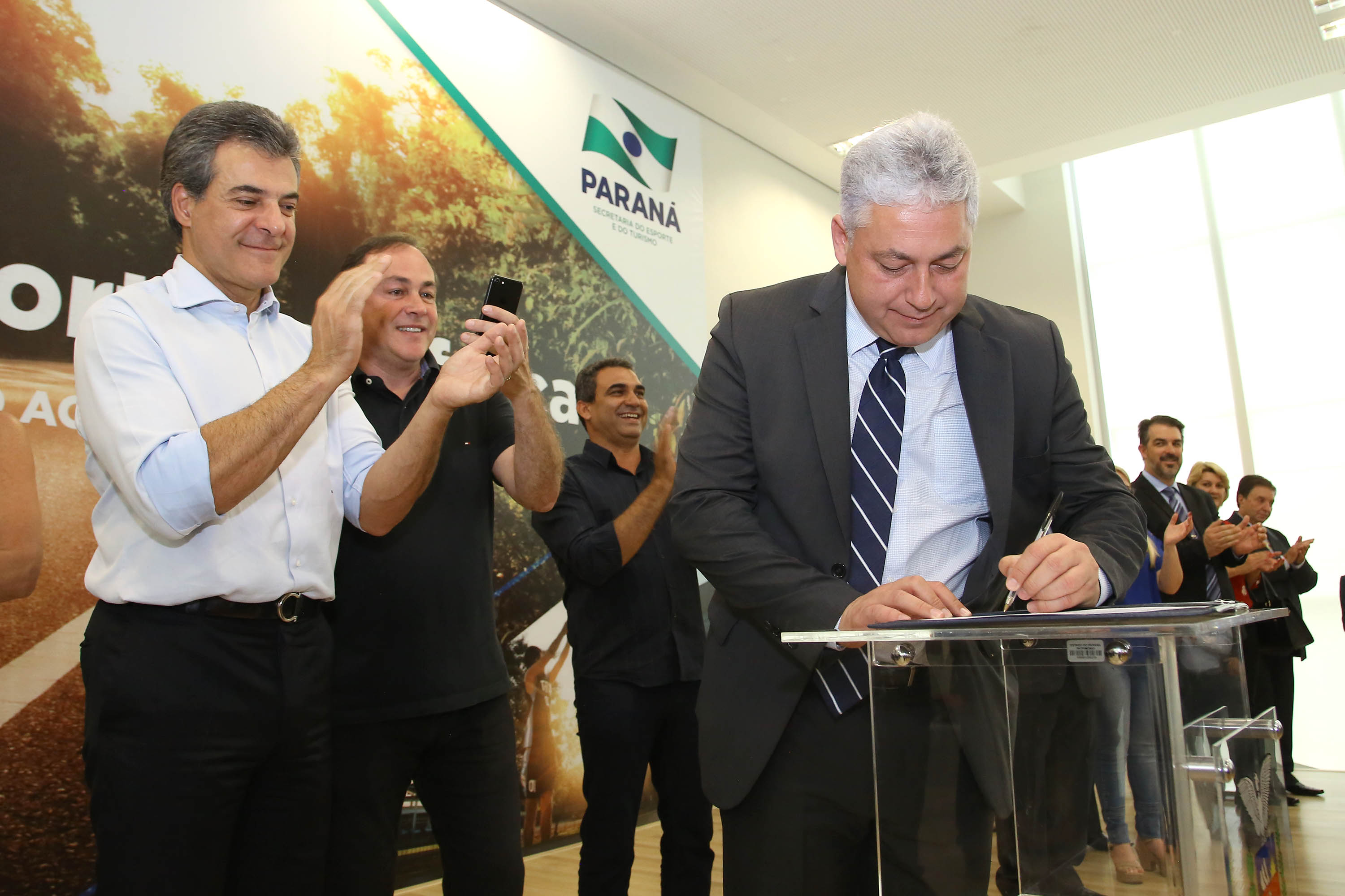 O governador Beto Richa assinou nesta quarta-feira (20), no Palácio do Iguaçu, o decreto que cria o Programa Estadual de Fomento e Incentivo ao Esporte (Proesportes). Com o programa será possível fazer a concessão de crédito de ICMS a projetos esportivos no Estado na forma de incentivo fiscal. A medida atente a antigo anseio de atletas, dirigentes e profissionais, pois deverá estimular novos investimentos no setor.