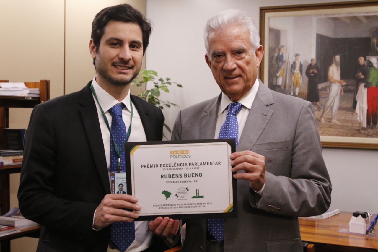 O deputado federal Rubens Bueno (PPS-PR) recebeu nesta terça-feira (11), na Câmara dos Deputados, o prêmio Excelência Parlamentar da organização não governamental Ranking dos Políticos por ter se classificado como o melhor parlamentar do Paraná entre 2015 e 2018, e o sétimo mais bem colocado de todo o Brasil. O certificado foi entregue aos 30 parlamentares, entre deputados e senadores, que obtiveram as melhores notas no levantamento.