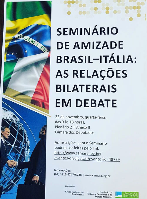 O evento, que é uma iniciativa do Grupo Parlamentar Brasil-Itália, presidido pelo deputado federal Rubens Bueno (PPS-PR), e da Comissão de Relações Exteriores e de Defesa Nacional será realizado a partir das 9 horas, no Plenário 2 do Anexo II da Câmara. “O seminário tem o propósito de colaborar para o aprimoramento não só das relações entre as câmaras dos deputados brasileira e italiana, mas, sobretudo, ampliar o diálogo entre os membros das comunidades italiana no Brasil e brasileira na Itália” explica o parlamentar.