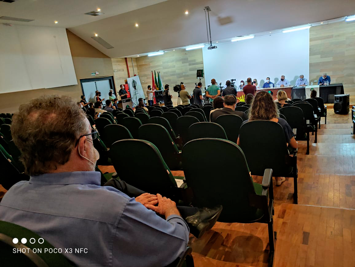 O deputado estadual Tercilio Turini participou hoje de manhã de reunião com representantes dos hospitais de Londrina, prefeitura, autoridades sanitárias e Ministério Público, para reforçar a grave situação da rede de saúde e a necessidade de a população reforçar as medidas de prevenção ao Covid-19.