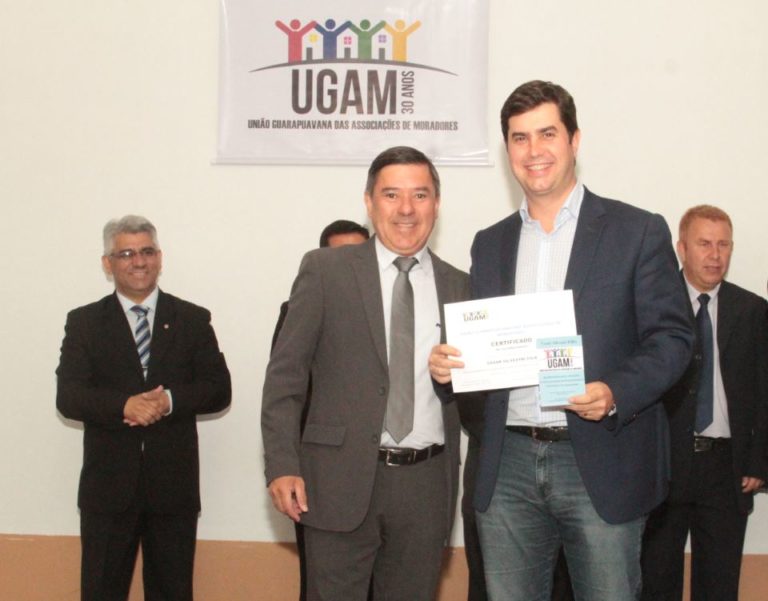 A UGAM (União Guarapuavana das Associações de Moradores) completou 30 anos. Para comemorar essa importante data, foi realizada uma confraternização para homenagear autoridades, lideranças políticas e moradores que, de alguma forma, tiveram importante papel na história da instituição. O prefeito Cesar Silvestri Filho foi um dos políticos homenageados. “É uma honra ser reconhecido pela UGAM. Toda a seriedade do trabalho desenvolvido pela organização mostra esse comprometimento com o povo guarapuavano. Nossa gestão firmou uma sólida parceria com a instituição, a fim de dar voz às associações de todos os bairros e atender as demandas. Que o trabalho da UGAM seja exemplo e que continue priorizando o interesse da população de toda a Guarapuava”, afirmou o prefeito Cesar Filho.