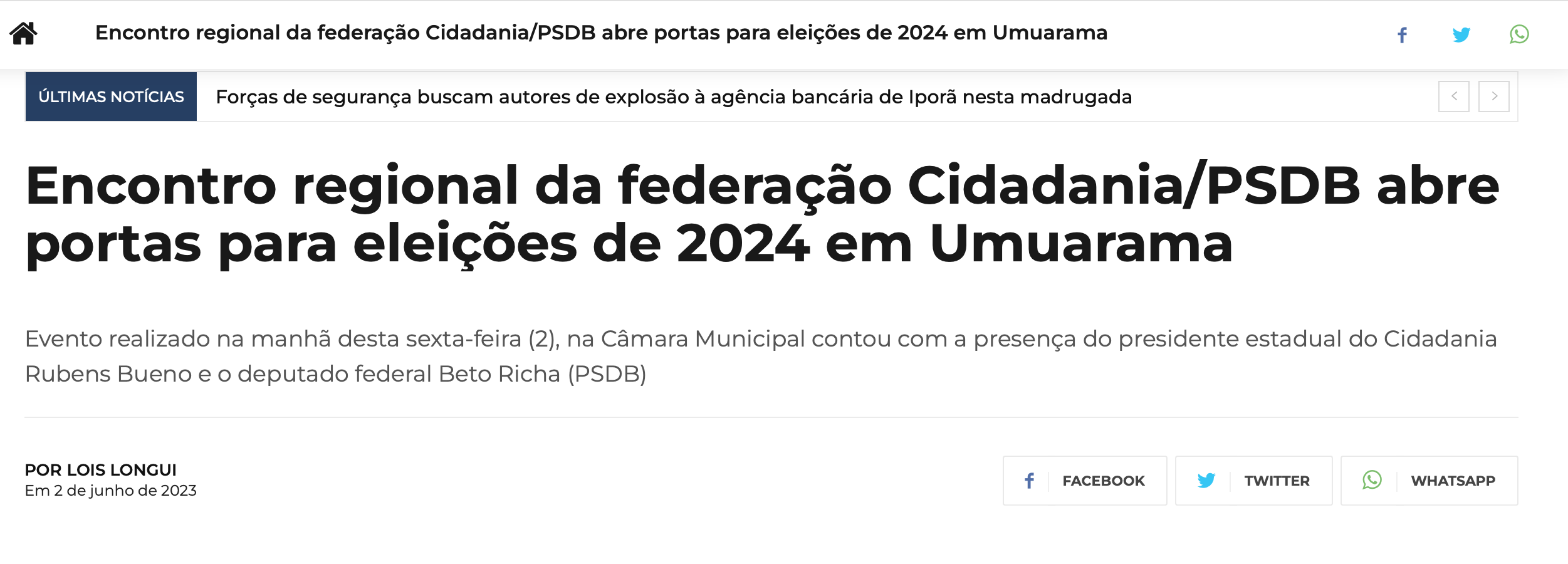 Evento realizado na manhã desta sexta-feira (2), na Câmara Municipal contou com a presença do presidente estadual do Cidadania Rubens Bueno e o deputado federal Beto Richa (PSDB)