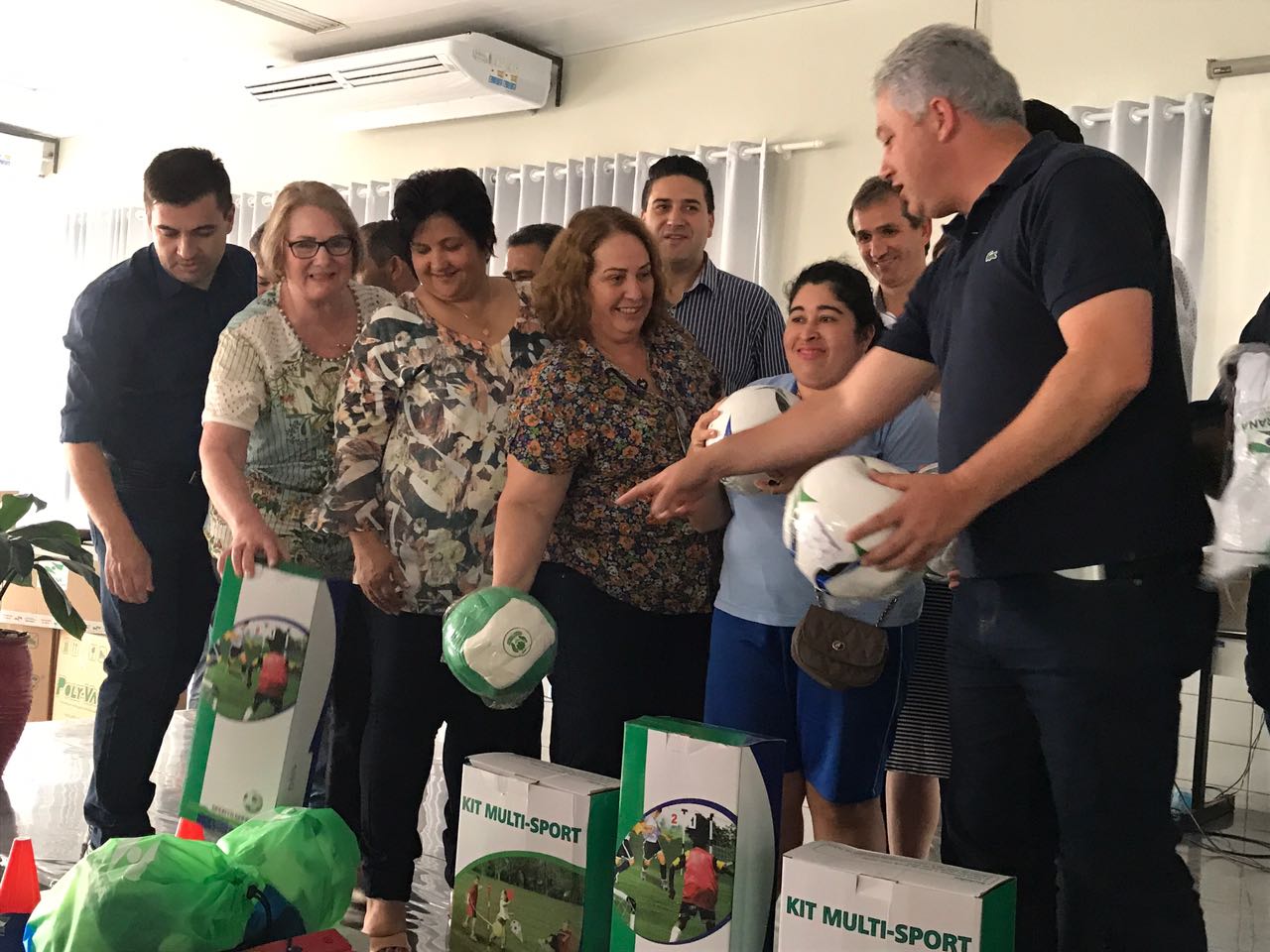 A solenidade de entrega ocorreu às 14H, nas dependências do Campus II da Universidade Paranaense (UNIPAR). A entrega dos investimentos, que devem beneficiar mais de 26 entidades, faz parte do PROGRAMA “PARANÁ MAIS ESPORTE”, da Secretaria do Esporte e Turismo do Paraná. Estiveram presentes no ato várias lideranças locais, prefeitos, vereadores, secretários, atletas e diretores de APAEs, como a Diretora da APAE de Toledo, Lucimar Recalcatti Vieira.