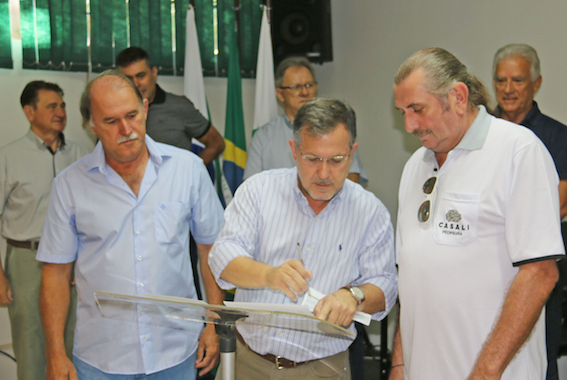 O prefeito Tauillo Tezelli assinou na manhã desta sexta-feira, junto com os deputados federal Rubens Bueno e estaduais Douglas Fabricio e Marcio Nunes; e o vice-prefeito Beto Voidelo e o Secretário de Obras e Serviços Públicos Luiz Carlos Malavazi, duas ordens de serviço no valor de R$ 5.660.718,13 milhões para que seja executada mais uma etapa das obras de recapeamento asfáltico em Campo Mourão, com recursos financiados do Governo do Estado do Paraná. Os vereadores Edson Battilani (Presidente da Câmara Municipal de Vereadores), Edoel Rocha, Olivino Custódio e Edilson Martins também se fizeram presentes. A empresa vencedora da licitação foi a Campusmorão Construção LTDA. Os trabalhos serão iniciados em breve, tanto na área central como na rua que passa pelo Parque Industrial da Coamo Agroindustrial Cooperativa. Também estiveram presentes na assinatura das ordens de serviço os proprietários da empresa.